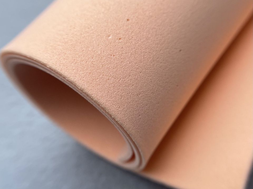 Фоаміран (фом, пориста гума) китайський - дрібнопористий тонкий спінений матеріал, який при тепловій обробці та розтягуванні "запам'ятовує" форму. Фом легко ріжеться ножицями, вирізається фігурними діроколами для паперу.