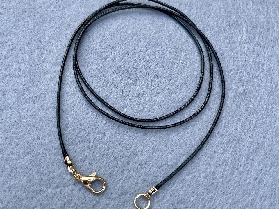 Шнурок на шию для кулонів та підвісок. Зроблений із просоченого вощеного шнура. Діаметр: 2-2,5 мм. Розмір шнурка: 52-57см. Колір чорний. Ціна за 100 шт.