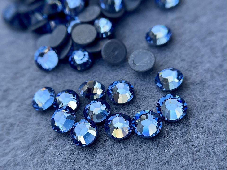 Клейові стрази Swarovski (HotFix). Розмір: ss 20 (5мм). Колір-Light Sapphire (211). Ціна за 100 шт. Стрази Swarovski гарячої фіксації - це кристали, що мають на звороті шар легкоклейкого клею, який починає плавитися вже при 100-120 градусах. Кріпляться вони за допомогою праски або паяльника для термостраз. Зручно формувати малюнок маленькими фрагментами, потім нагріти прес або паяльник і фіксувати стрази.