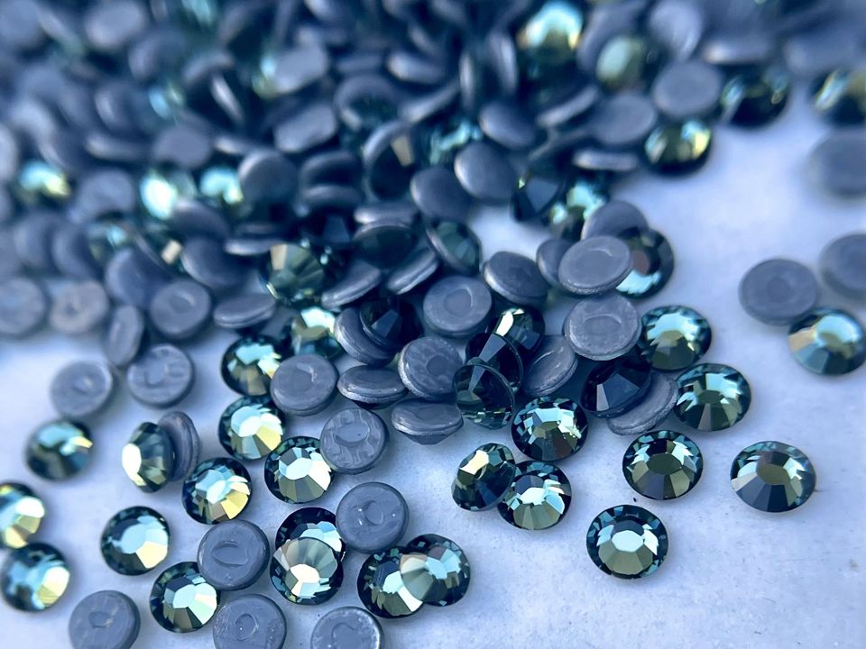 Клейові стрази Swarovski (HotFix). Розмір: ss 10 (2,8 мм). Колір-Erinite (360). Ціна за 100 шт. Стрази Swarovski гарячої фіксації - це кристали, що мають на звороті шар легкоклейкого клею, який починає плавитися вже при 100-120 градусах. Кріпляться вони за допомогою праски або паяльника для термостраз. Зручно формувати малюнок маленькими фрагментами, потім нагріти прес або паяльник і фіксувати стрази.