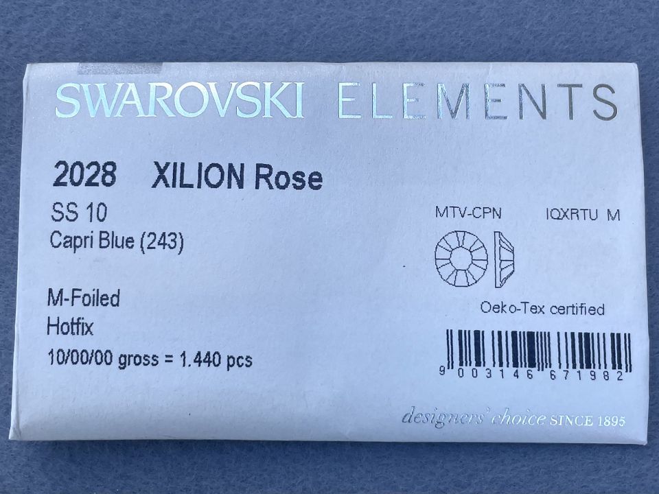 Клейові стрази Swarovski (HotFix). Розмір: ss 10 (2,8 мм). Колір-Capri Blue (243). Ціна за 100 шт.