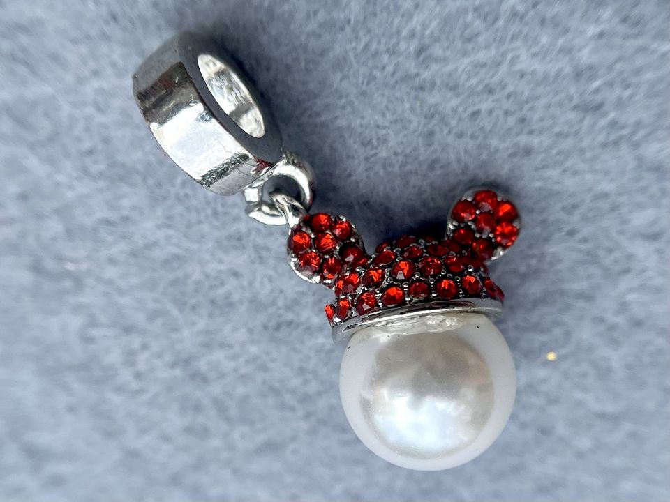 Підвіска "Міккі" зі стразами та вклеєною перлиною. Іде на намистину-бейле. Розмір бейлу: 8*3мм, розмір підвіски: 14*14мм.