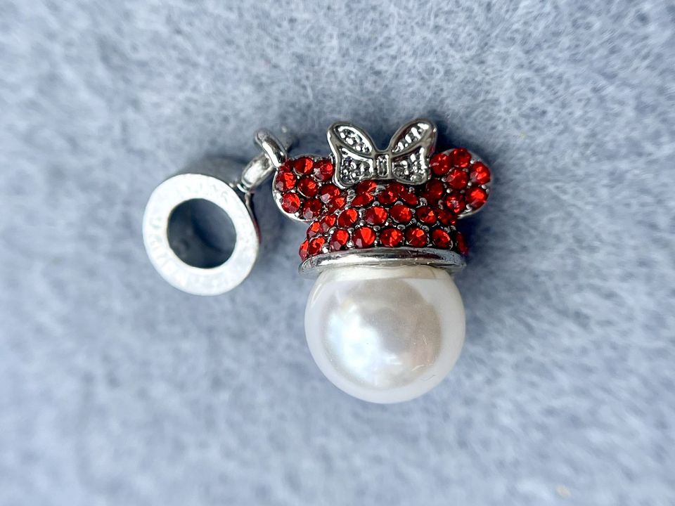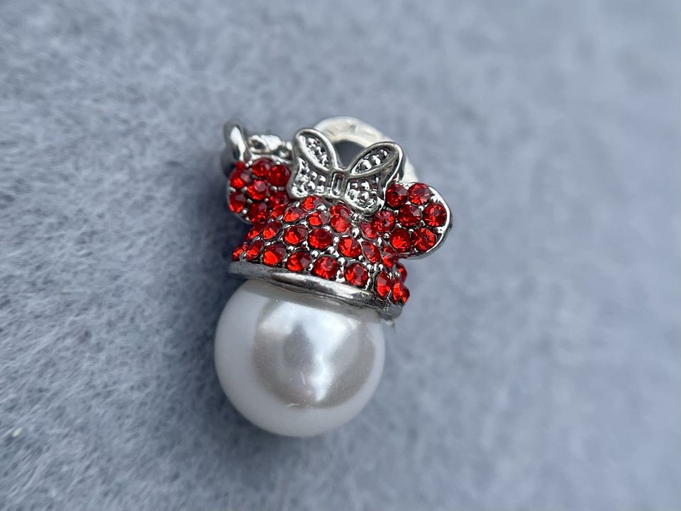 Підвіска "Мінні" зі стразами та вклеєною перлиною. Іде на намистину-бейле. Розмір бейлу: 8*3мм, розмір підвіски: 14*14мм. Колір-сталь. Ціна за 1 штуку.