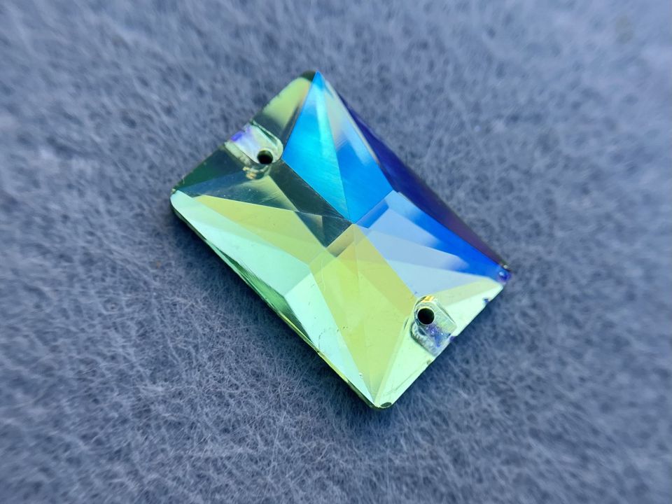 Пришивні скляні камінці. Виробництво: Чехія. Розмір: 13*18мм, форма-прямокутник. Колір - Peridot AB. Ціна за планшетку – 24шт.