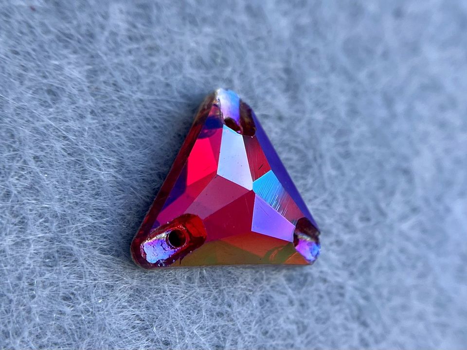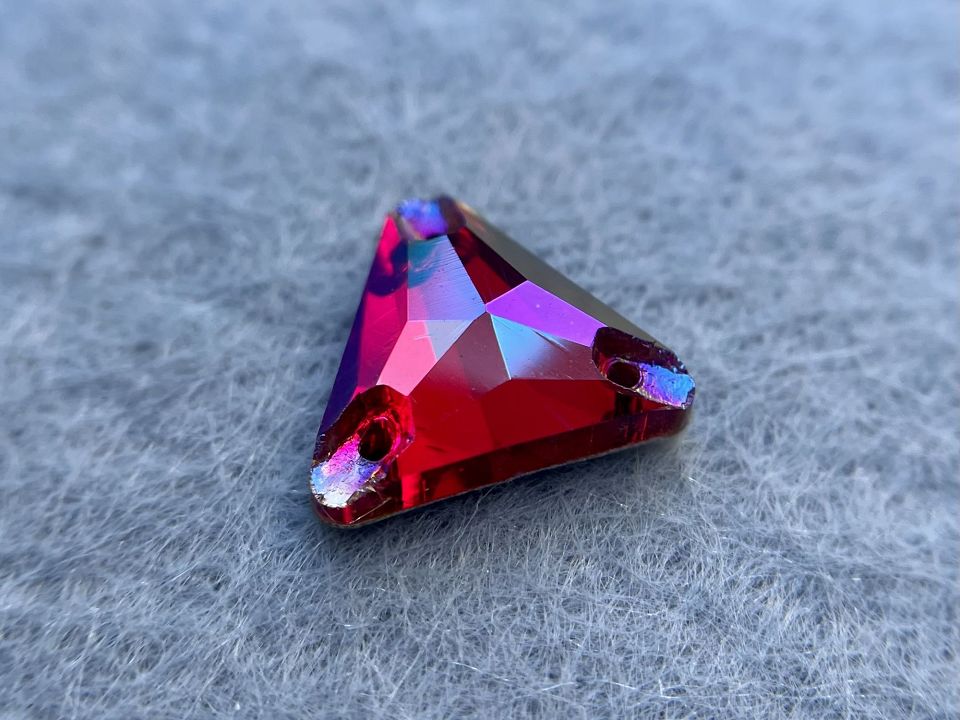 Пришивні скляні камінці. Виробництво: Чехія. Розмір: 14мм, форма-трикутник. Колір - Light Siam Shimmer. Ціна за планшетку – 30шт.