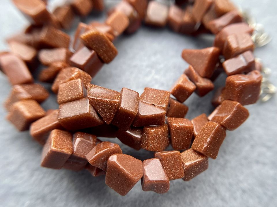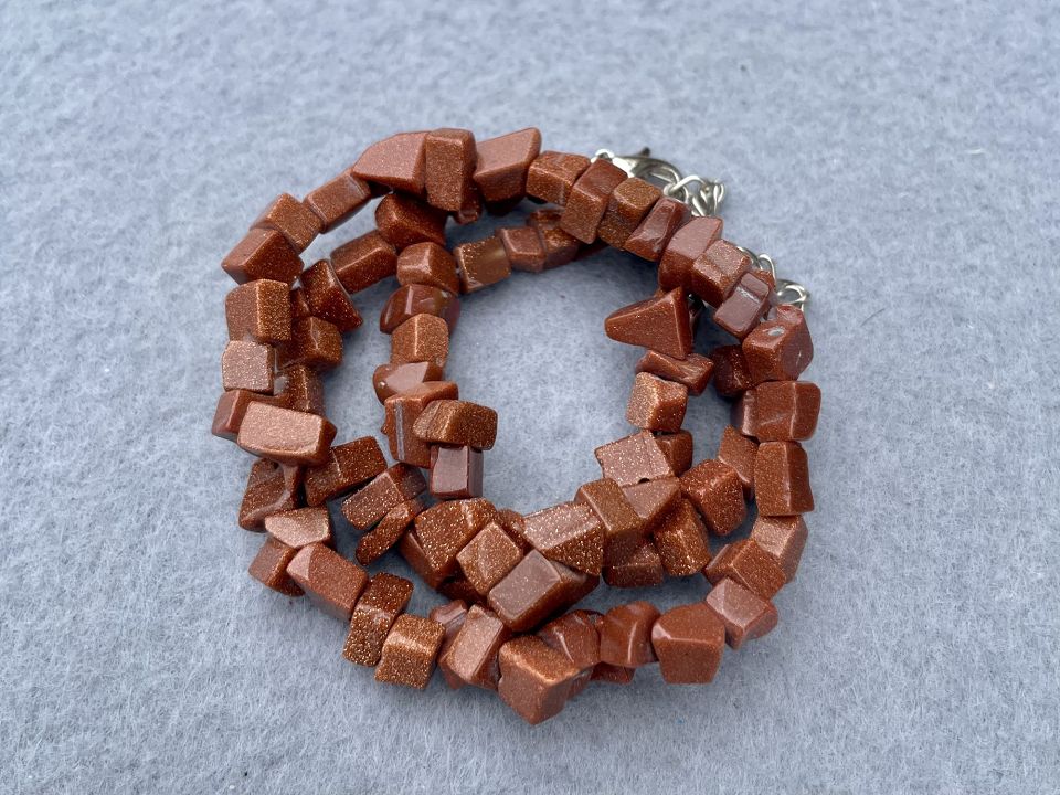 Авантюрин золотий-дрібна крихта. Розмір намистини: від 4 до 8 мм.