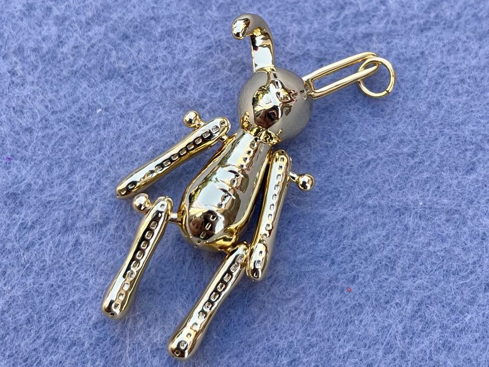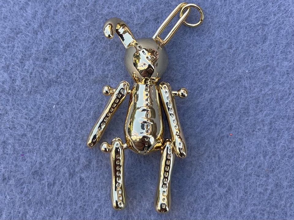 Кулон "Кролик"-Мілано класу люкс (MILANO LUX), з латуні з родієвим покриттям. З лапами, що рухаються. Колір золото. Розміри 20*45 мм. Ціна за 1 штуку. Ідеально підійде для ланцюгів на шию.