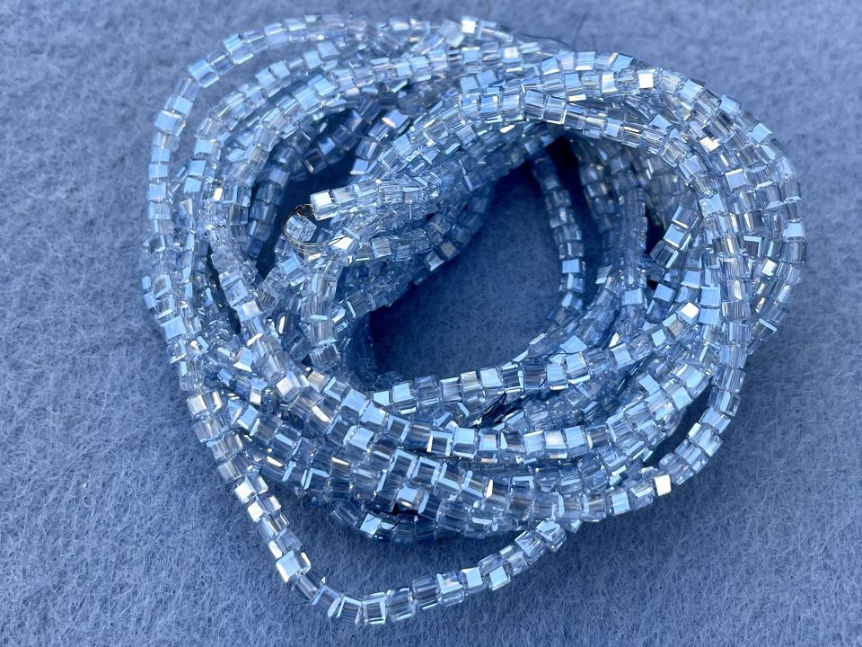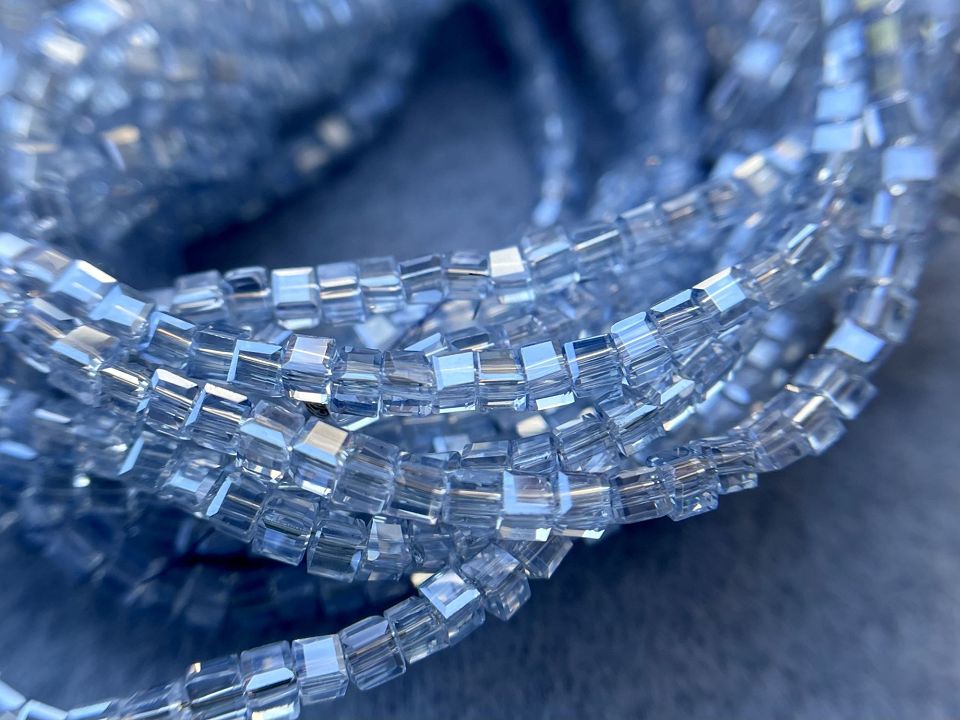 Кришталеві намистини, грановані. Розмір: 2мм, отвір: 0,8мм. Форма кубик. У нитці: 190+-5шт. Ціна за 1 нитку.