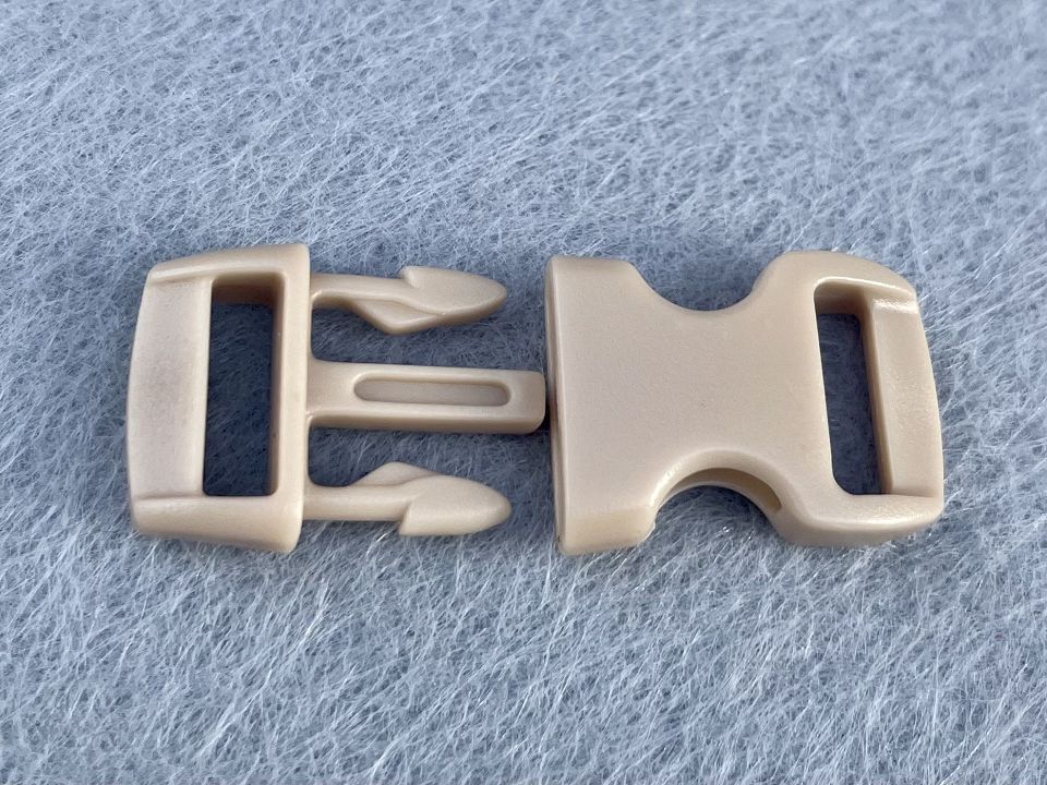 Замок Фастекс із пластику. Розмір: 15 * 30мм, отвір: 3 * 10мм. Випуклий (округлений) замок фастекс використовується для створення браслетів виживання, які плетуться з міцного зносостійкого шнура паракорд. Ціна за 1 штуку.