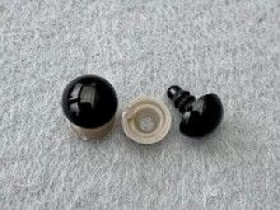 Очі для іграшок. Чорні на ніжці, діаметр 12 мм + безпечне кріплення. Можна використовувати і для носика. Ціна за упаковку - 30пар.