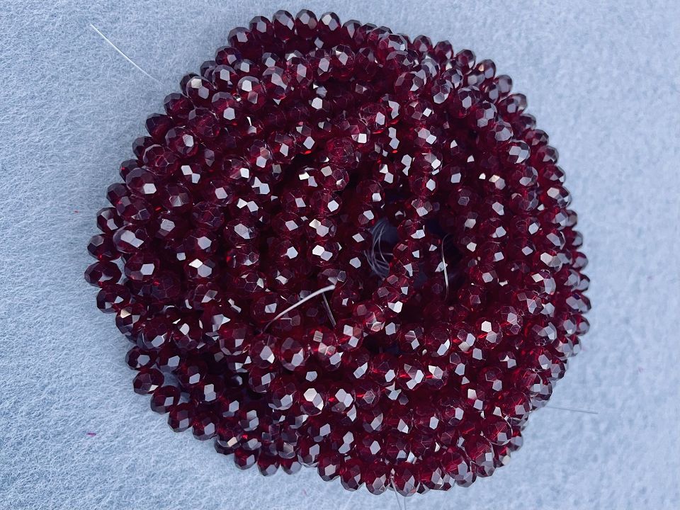 Кришталеві намистини, грановані. Розмір: 6*5мм, отвір: 1мм. Форма: рондель, сфера. У нитці: 90+-3шт. Ціна за 1 нитку.