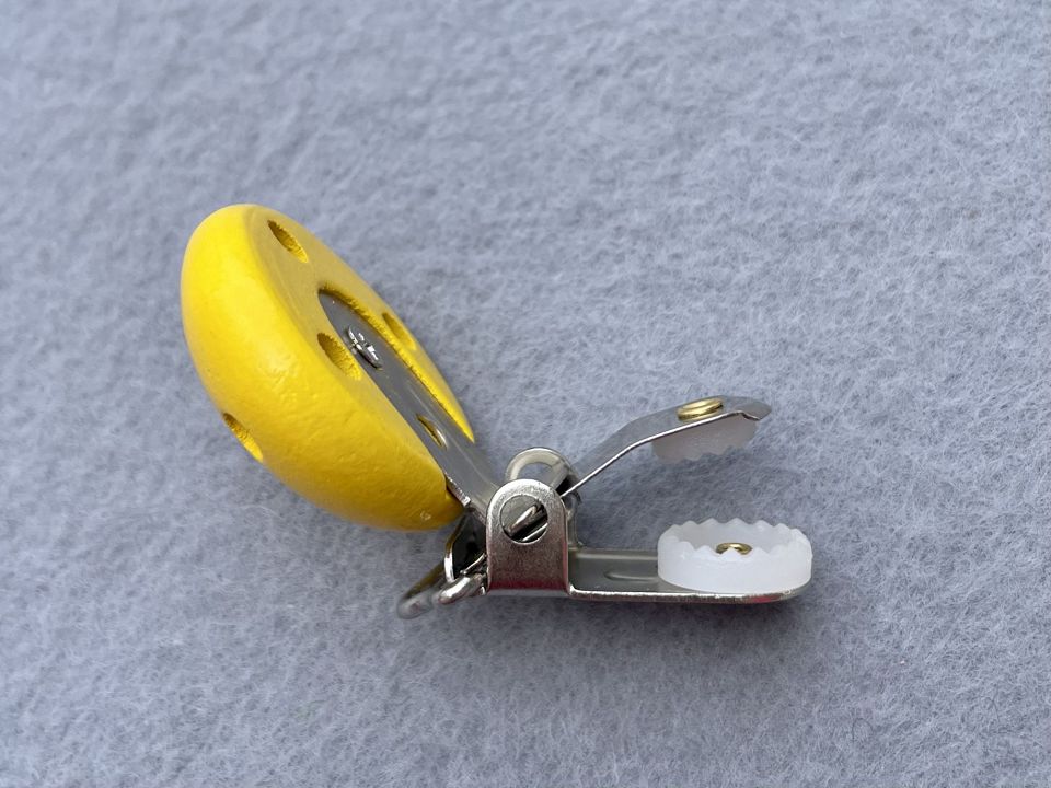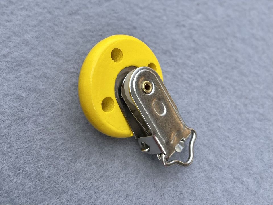 Затискачі-кліпси для тримачів пустушок, гризунків, підвісок. Механізм: метал та пластик. Декор - дерев'яна "гудзик" діаметром 30 мм. Розмір всього затиску 30х45 мм. Ціна за 5шт (можна різних кольорів)