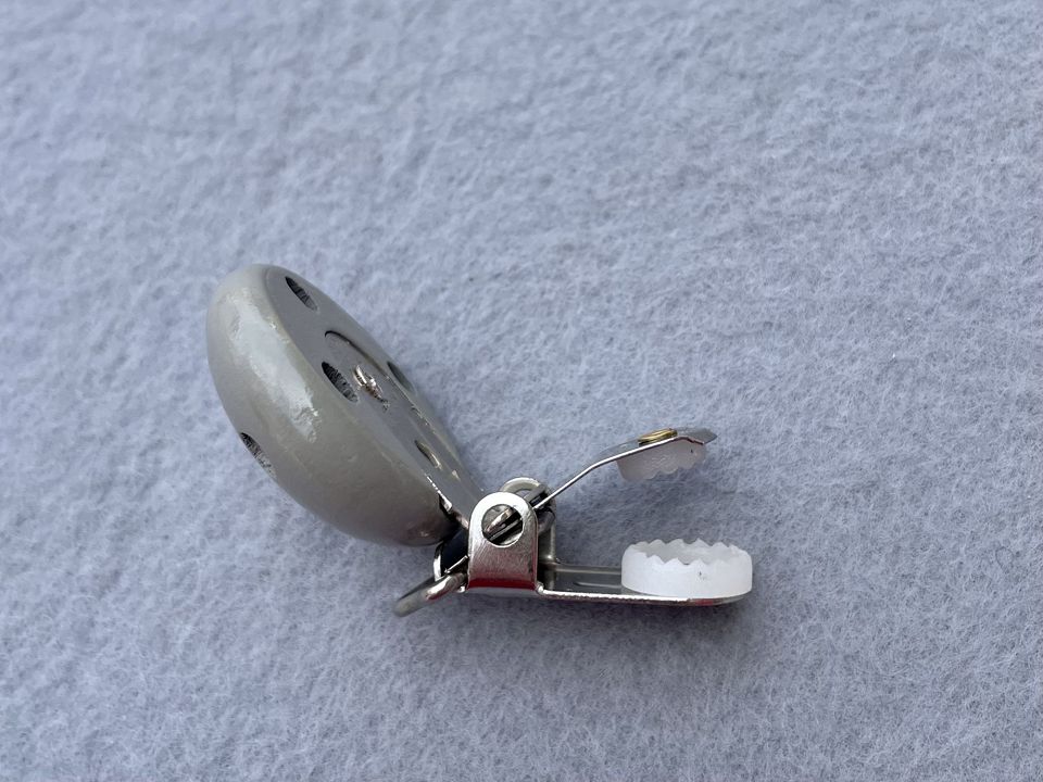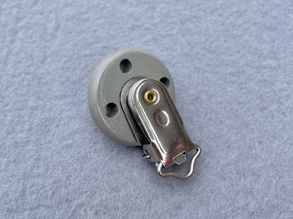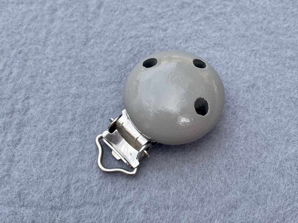 Затискачі-кліпси для тримачів пустушок, гризунків, підвісок. Механізм: метал та пластик. Декор - дерев'яна "гудзик" діаметром 30 мм. Розмір всього затиску 30х45 мм. Ціна за 5шт (можна різних кольорів)