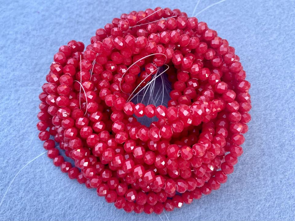 Кришталеві намистини, грановані. Розмір: 6*5мм, отвір: 1мм. Форма: рондель, сфера. У нитці: 90+-3шт. Ціна за 1 нитку.