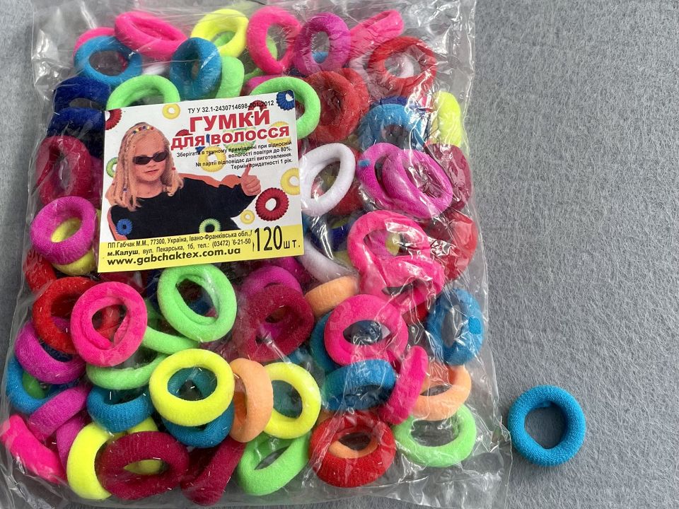 Набір гумок для волосся. Кольорові. Діаметр-2см. Ціна за пакування-120шт.