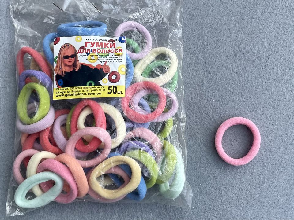 Набір гумок для волосся. Кольорові. Діаметр-3,5 см. Ціна за упаковку-50шт.