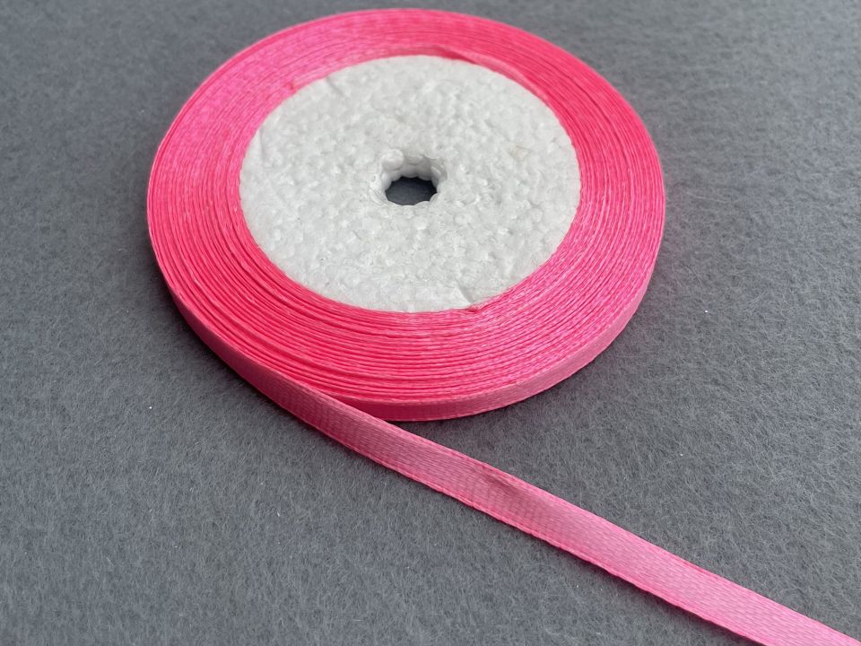 Стрічка атласна-ширина 6мм. У мотку ~23 метри. Колір-яскраво рожевий. Застосовують для прикраси, оздоблення одягу, вишивання стрічками, плетіння стрічками тощо. Ціна вказана за 1 моток. Виробництво – Китай.