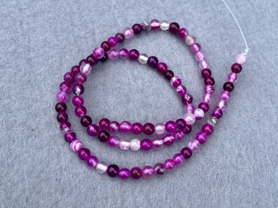 Агат-пресований, гладкий. Розмір намистини: 4мм. Колір малиновий. Кількість намистин на нитці: 92 (+-2шт). Отвір каменю: 1мм. Ціна за нитку (без замку).