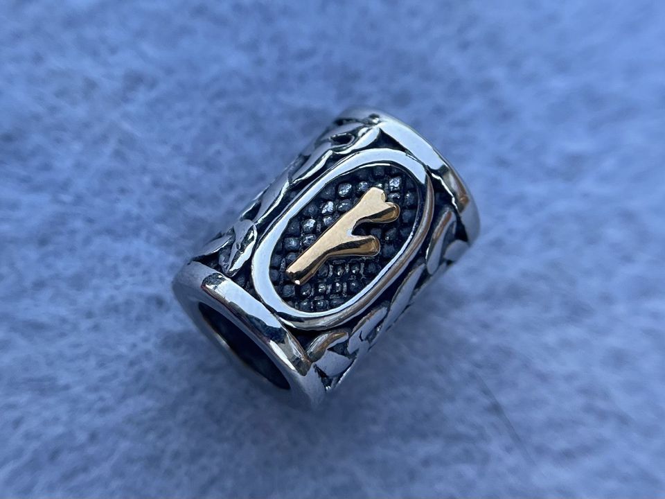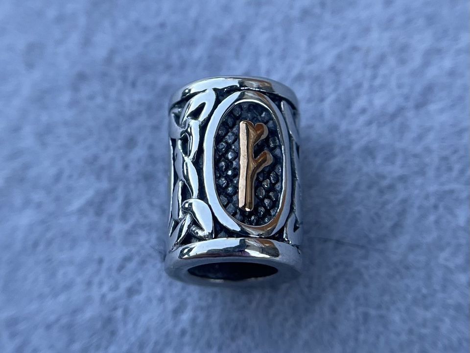 Намисто - Руна (Феу). Руна багатства. Розгляньте проблему з матеріального боку, розберіть, що брати, а що не брати. Руна дає захист від втрат, охороняє цінності досягнення. У питаннях кохання радить відновити старі любовні зв'язки. Намисто з нержавіючої сталі для виготовлення біжутерії. Використовуються для шкіряних шнурів, ланцюгів, парокорду.