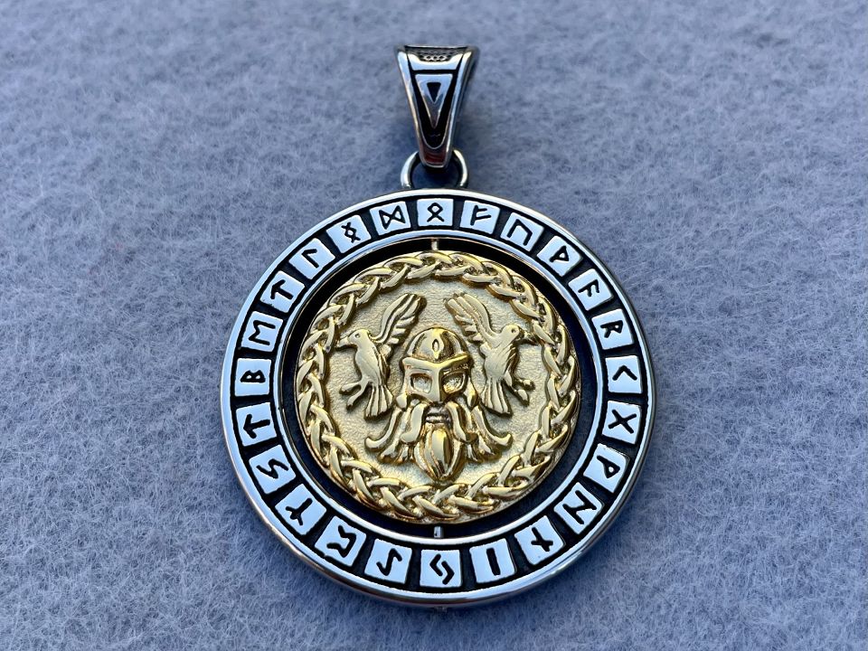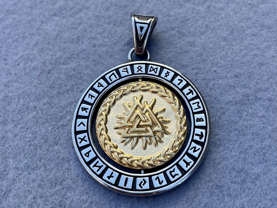 Колір-сталь із позолотою. Кулон з середнім елементом, що обертається.