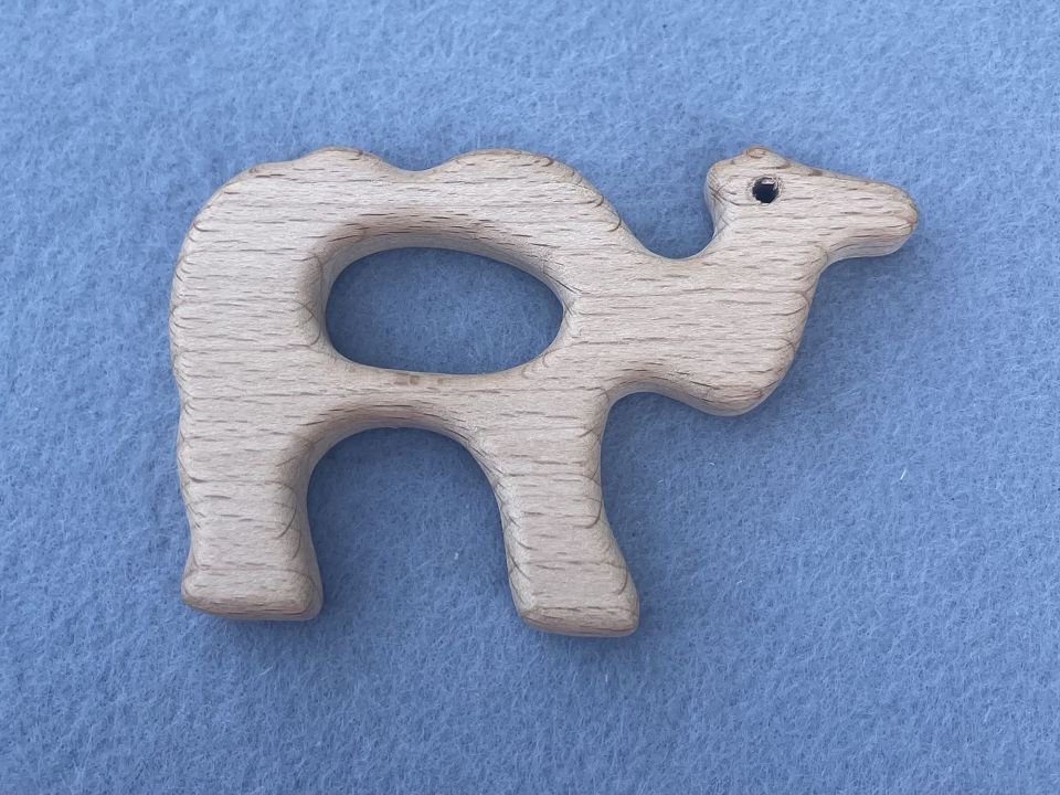 Гризунок дерев'яний "Верблюд". Дерев'яний, фігурний гризунок для слінгбусу. Аксесуар виготовлений із натуральної деревини (бук), якісно оброблений, не покритий лаком. Такий гризунок повністю безпечний для малюка, він не залишить скалку. Розмір: 6*8,5см.
