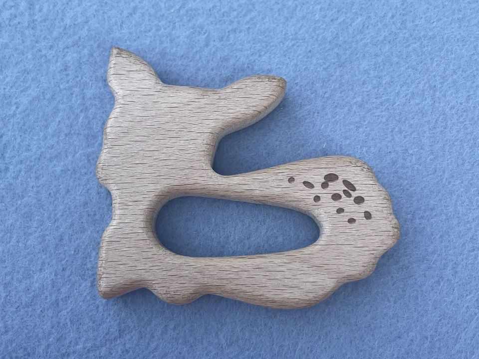 Гризунок дерев'яний "Бембі". Дерев'яний, фігурний гризунок для слінгбусу. Аксесуар виготовлений із натуральної деревини (бук), якісно оброблений, не покритий лаком. Такий гризунок повністю безпечний для малюка, він не залишить скалку. Розмір: 7*7,5см.