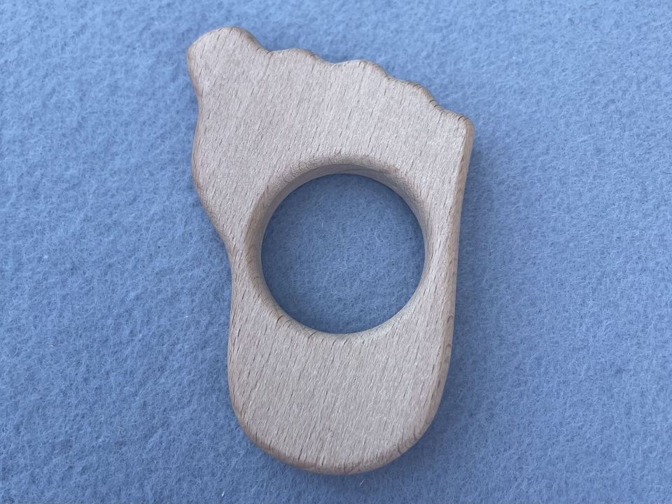 Гризунок дерев'яний "Стопа". Дерев'яний, фігурний гризунок для слінгбусу. Аксесуар виготовлений із натуральної деревини (бук), якісно оброблений, не покритий лаком. Такий гризунок повністю безпечний для малюка, він не залишить скалку. Розмір: 5,5 * 8,5см.