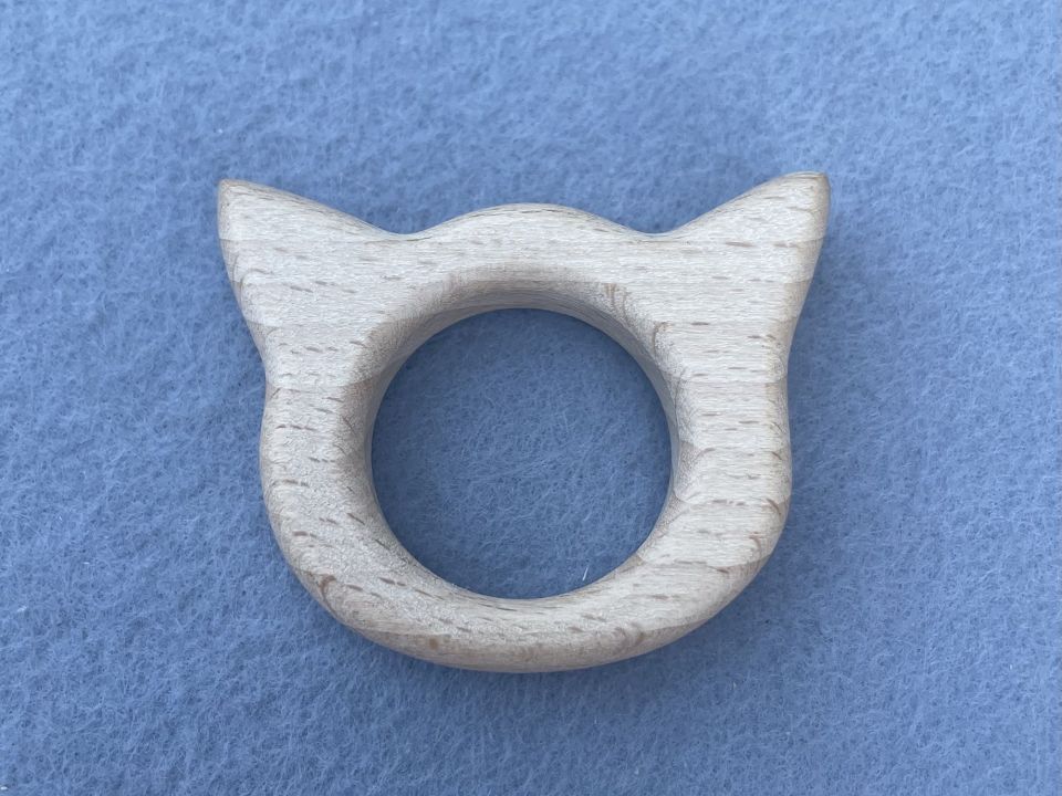 Гризунок дерев'яний "Котик". Дерев'яний, фігурний гризунок для слінгбусу. Аксесуар виготовлений із натуральної деревини (бук), якісно оброблений, не покритий лаком. Такий гризунок повністю безпечний для малюка, він не залишить скалку. Розмір: 5,5 * 4,5см.