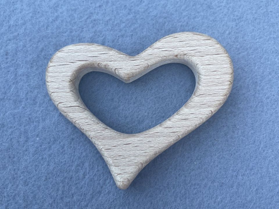 Гризунок дерев'яний "Серце". Дерев'яний, фігурний гризунок для слінгбусу. Аксесуар виготовлений із натуральної деревини (бук), якісно оброблений, не покритий лаком. Такий гризунок повністю безпечний для малюка, він не залишить скалку. Розмір: 6 * 7см.