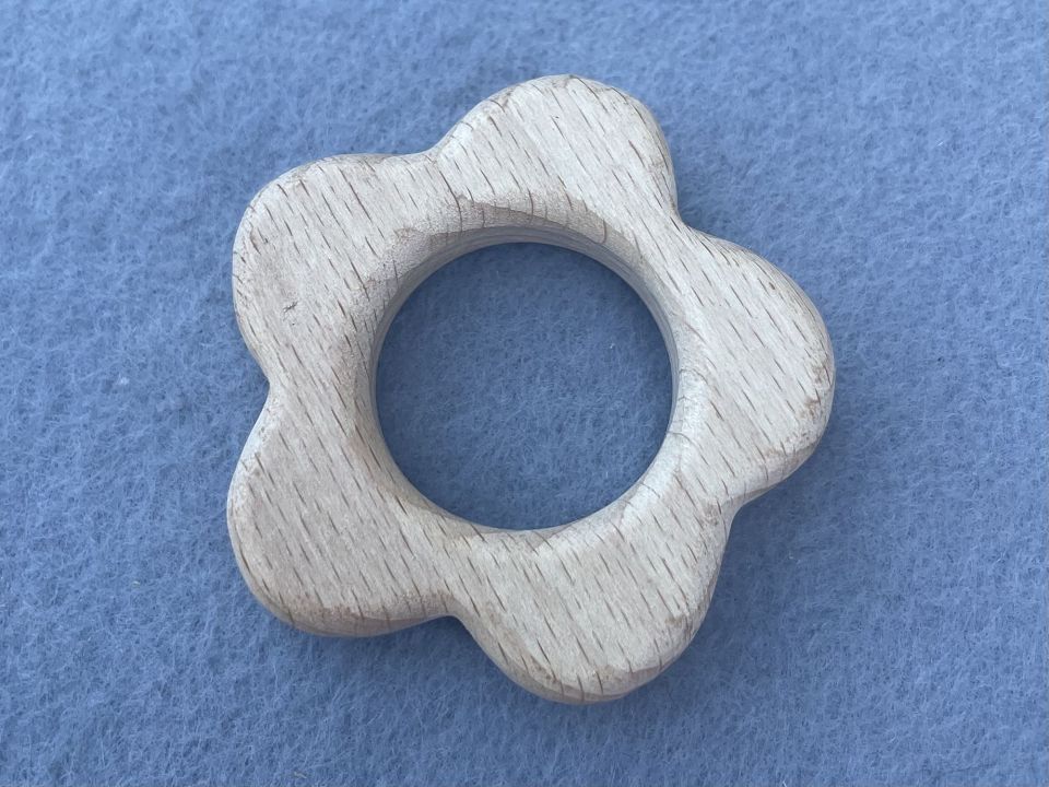 Гризунок дерев'яний "Квітка". Дерев'яний, фігурний гризунок для слінгбусу. Аксесуар виготовлений із натуральної деревини (бук), якісно оброблений, не покритий лаком. Такий гризунок повністю безпечний для малюка, він не залишить скалку. Розмір: 5*5см.