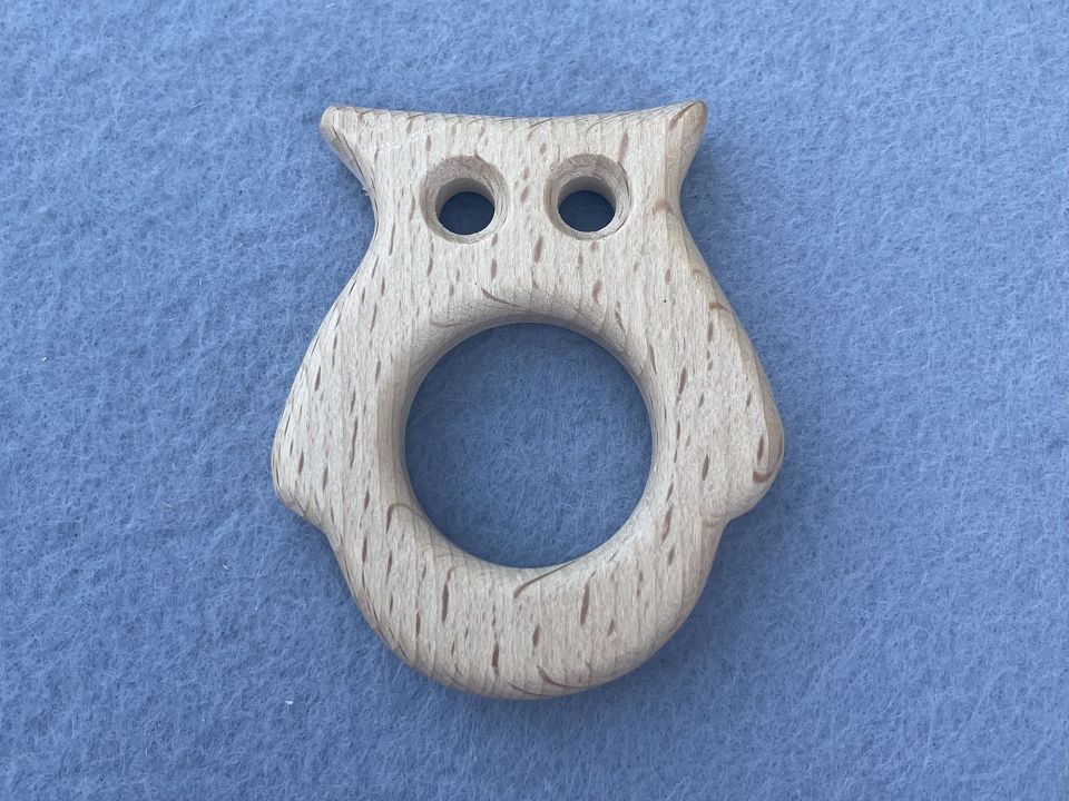 Гризунок дерев'яний "Сова". Дерев'яний, фігурний гризунок для слінгбусу. Аксесуар виготовлений із натуральної деревини (бук), якісно оброблений, не покритий лаком. Такий гризунок повністю безпечний для малюка, він не залишить скалку. Розмір: 5*6см.