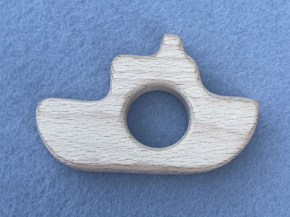 Гризунок дерев'яний "Кораблик". Дерев'яний, фігурний гризунок для слінгбусу. Аксесуар виготовлений із натуральної деревини (бук), якісно оброблений, не покритий лаком. Такий гризунок повністю безпечний для малюка, він не залишить скалку. Розмір: 4,5 * 7см.