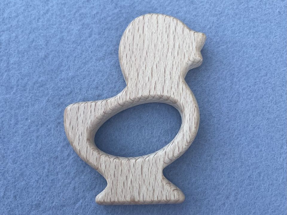 Гризунок дерев'яний "Качечка". Дерев'яний, фігурний гризунок для слінгбусу. Аксесуар виготовлений із натуральної деревини (бук), якісно оброблений, не покритий лаком. Такий гризунок повністю безпечний для малюка, він не залишить скалку. Розмір: 5,5 * 7,5см.