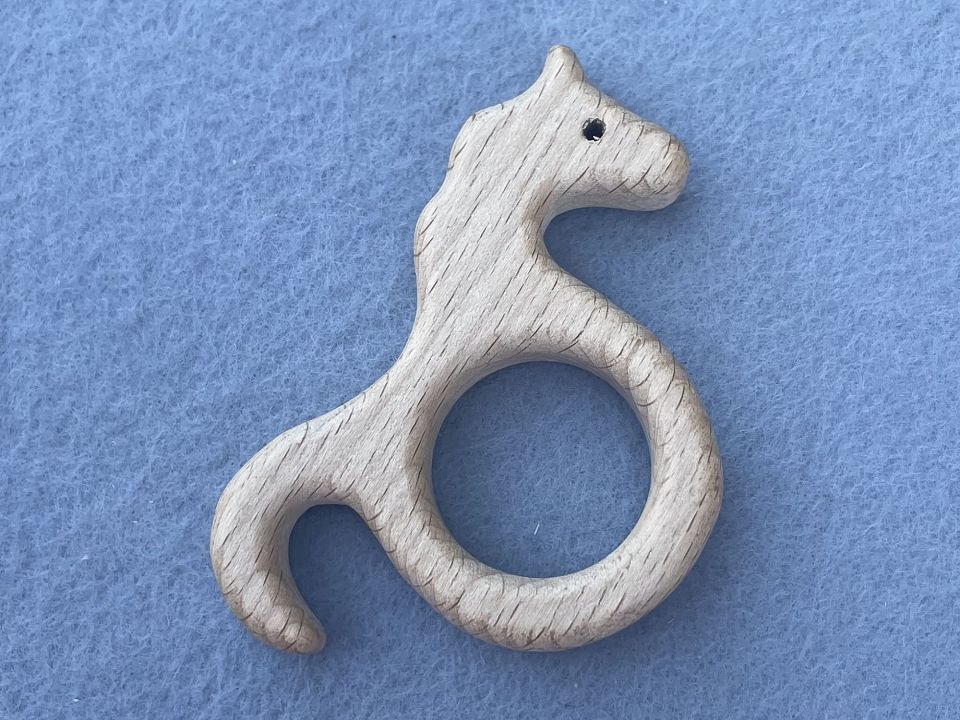 Гризунок дерев'яний "Морський Коник". Дерев'яний, фігурний гризунок для слінгбусу. Аксесуар виготовлений із натуральної деревини (бук), якісно оброблений, не покритий лаком. Такий гризунок повністю безпечний для малюка, він не залишить скалку. Розмір: 5*7,5см.