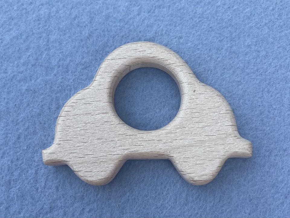 Гризунок дерев'яний "Машина". Дерев'яний, фігурний гризунок для слінгбусу. Аксесуар виготовлений із натуральної деревини (бук), якісно оброблений, не покритий лаком. Такий гризунок повністю безпечний для малюка, він не залишить скалку. Розмір: 7,5 * 5см.