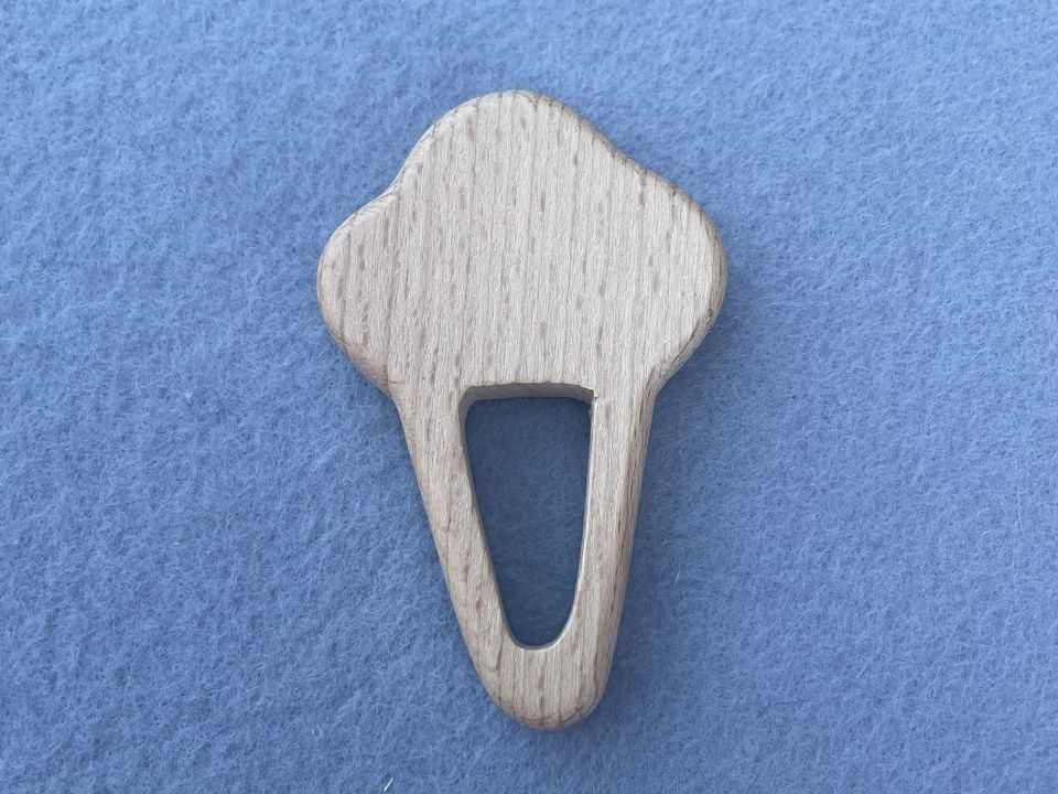 Гризунок дерев'яний "Морозиво". Дерев'яний, фігурний гризунок для слінгбусу. Аксесуар виготовлений із натуральної деревини (бук), якісно оброблений, не покритий лаком. Такий гризунок повністю безпечний для малюка, він не залишить скалку. Розмір: 7*4,5см.