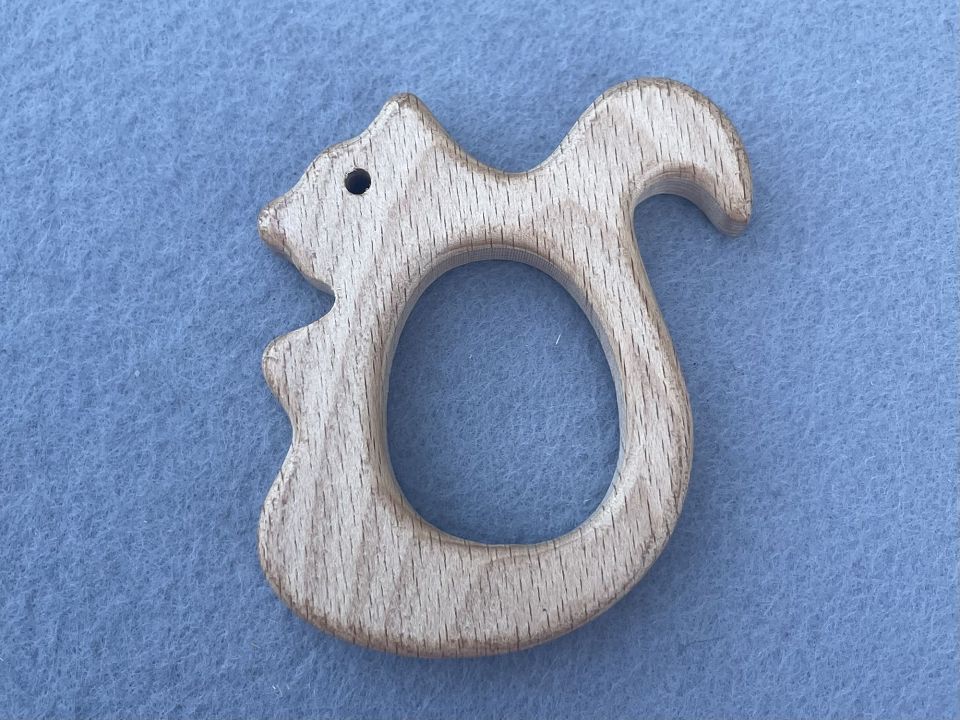 Гризунок дерев'яний "Білочка". Дерев'яний, фігурний гризунок для слінгбусу. Аксесуар виготовлений із натуральної деревини (бук), якісно оброблений, не покритий лаком. Такий гризунок повністю безпечний для малюка, він не залишить скалку. Розмір: 7,5 * 6см.