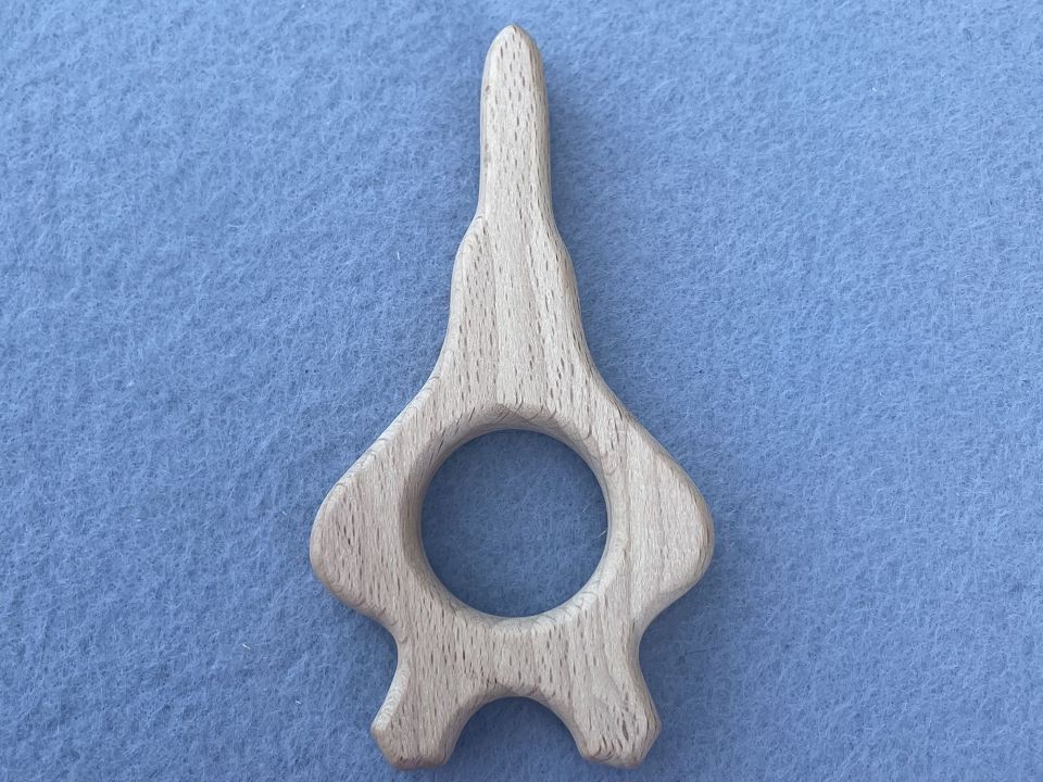 Гризунок дерев'яний "Ракета". Дерев'яний, фігурний гризунок для слінгбусу. Аксесуар виготовлений із натуральної деревини (бук), якісно оброблений, не покритий лаком. Такий гризунок повністю безпечний для малюка, він не залишить скалку. Розмір: 9*4,5см.