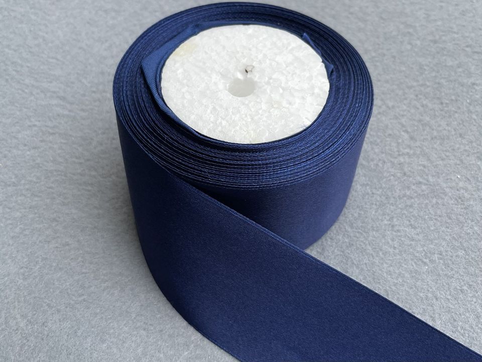 Стрічка атласна-ширина 5 см. У мотку ~23 метри. Колір-темно синій. Застосовують для прикраси, обробки одягу, вишивання стрічками, плетіння стрічками і т.д. Ціна вказана за 1 моток. Виробництво – Китай.