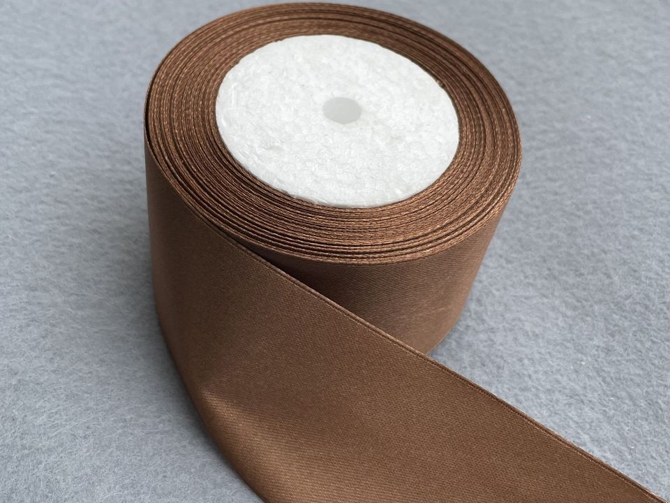 Стрічка атласна-ширина 5 см. У мотку ~23 метри. Колір-світло коричневий. Застосовують для прикраси, обробки одягу, вишивання стрічками, плетіння стрічками і т.д. Ціна вказана за 1 моток. Виробництво – Китай.