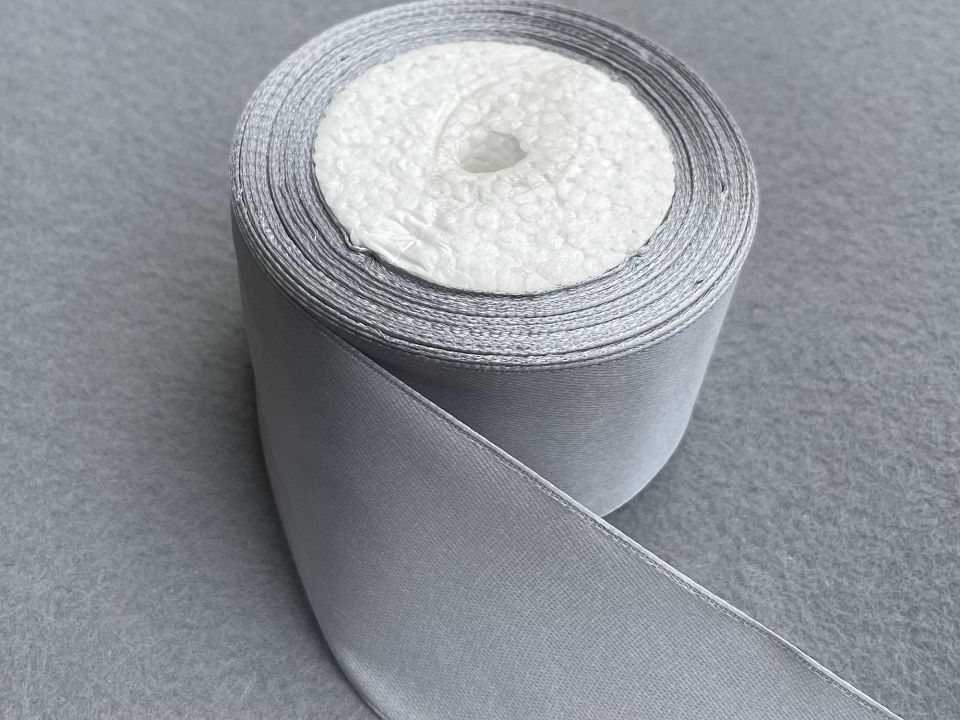 Стрічка атласна-ширина 5 см. У мотку ~23 метри. Колір- сірий. Застосовують для прикраси, обробки одягу, вишивання стрічками, плетіння стрічками і т.д. Ціна вказана за 1 моток. Виробництво – Китай.