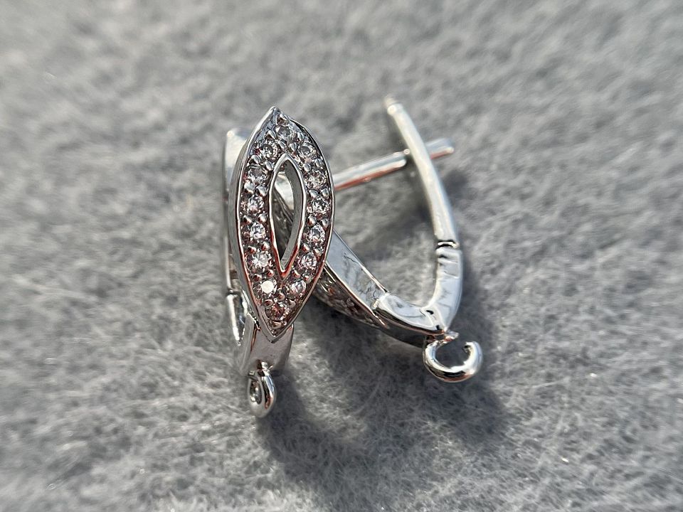 Швенза Milano, йде з роз'ємною петелькою для підвісів. Покриття родій із інкрустацією фіанітами. Розмір: 24 * 7мм. Ціна за пару