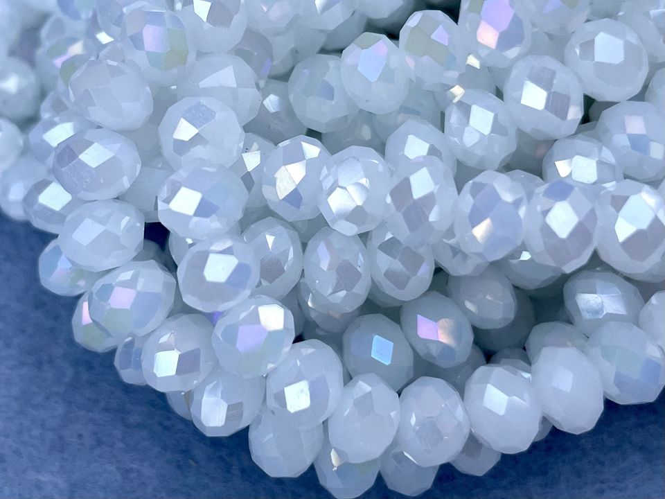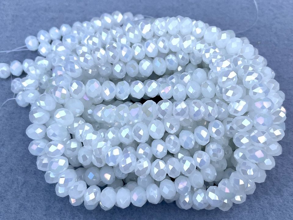 Кришталеві намистини, грановані. Розмір: 8*7мм, отвір: 1,5мм. Форма: рондель, сфера (еліпсоїд). У нитці: 70+-3шт. Ціна за 1 нитку.