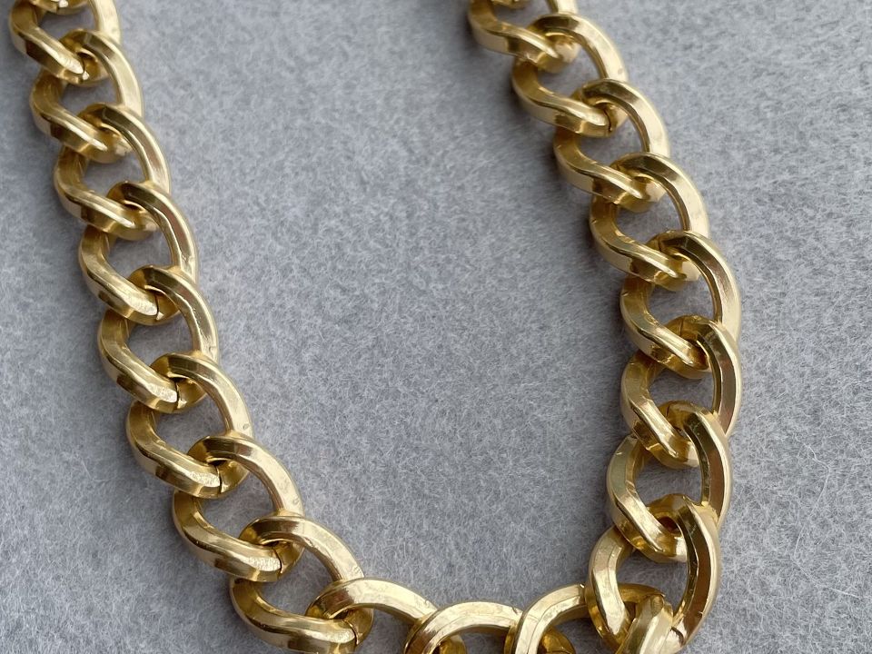 Розмір ланки 2 * 1.6см. Колір-лимонне золото. Ланцюг велика використовують як декоративний елемент (в залежності від розміру ланцюга) при пошитті: сумок, рюкзаків, косметичок, брелків, взуття, одягу, елемент декору інтер'єру, при створенні біжутерії та інше.