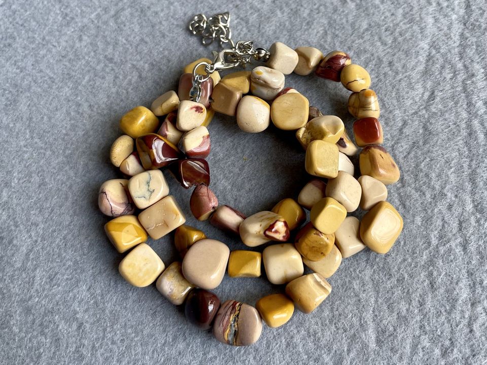Яшма – крихта. Розмір намистини: від 6 до 15 мм. Кількість намистин на нитці: приблизно 56 (+-2шт). Отвір каменю: 1мм. Ціна за нитку (із замком). Довжина нитки: 44см +ланцюжок 4 см
