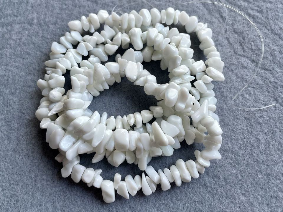 Агат білий -дрібна крихта. Розмір намистини: від 6 до 12 мм. Отвір каменю: 1мм. Довжина нитки: 86см
