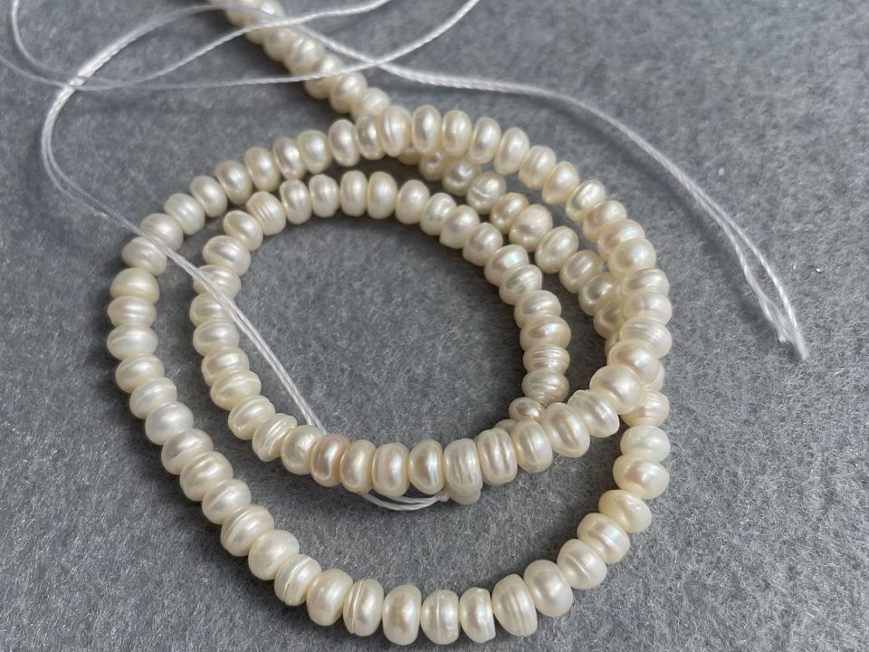 Перли річкові. Розмір: 5-6*2,5-3мм. Нитка 37см