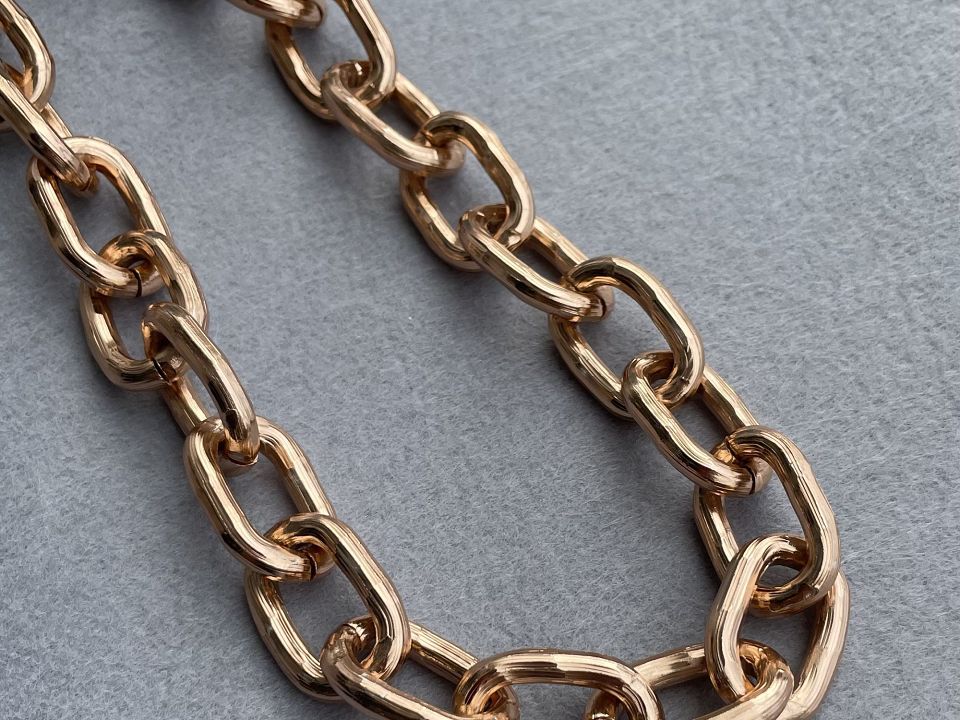 Ланцюг декоративна з насічками. Розмір ланки 3 * 2см. Колір-червоне золото. Ланцюг велика використовують як декоративний елемент (в залежності від розміру ланцюга) при пошитті: сумок, рюкзаків, косметичок, брелків, взуття, одягу, елемент декору інтер'єру, при створенні біжутерії та інше. Ціна вказана за 1 метр. Кольори товарів на сайті можуть незначно відрізнятися від реальних через особливості передачі кольору монітора.