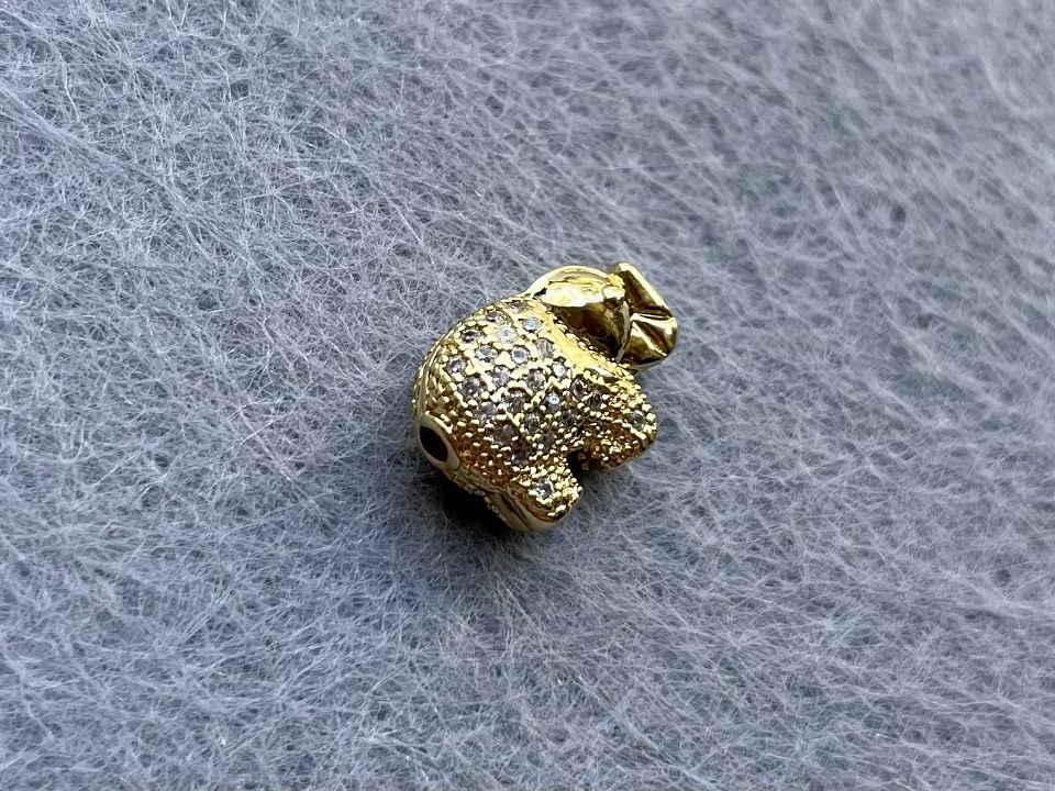 Намистини інкрустовані Кубічним цирконієм (також називаються намистинами з фіанітами) Покриття родій Колір золото. Розмір: 10 * 13мм, отвір-1,5 мм. Ціна за 1шт