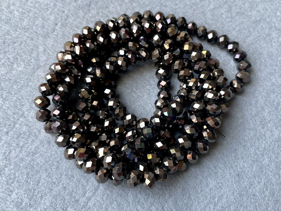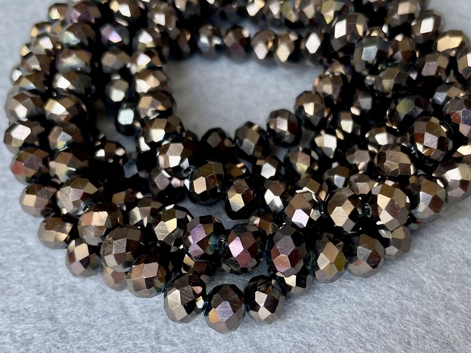 Кришталеві намистини, грановані. Розмір: 8*7мм, отвір: 1,5мм. Форма: рондель, сфера (еліпсоїд). У нитці: 65+-3шт. Ціна за 1 нитку.